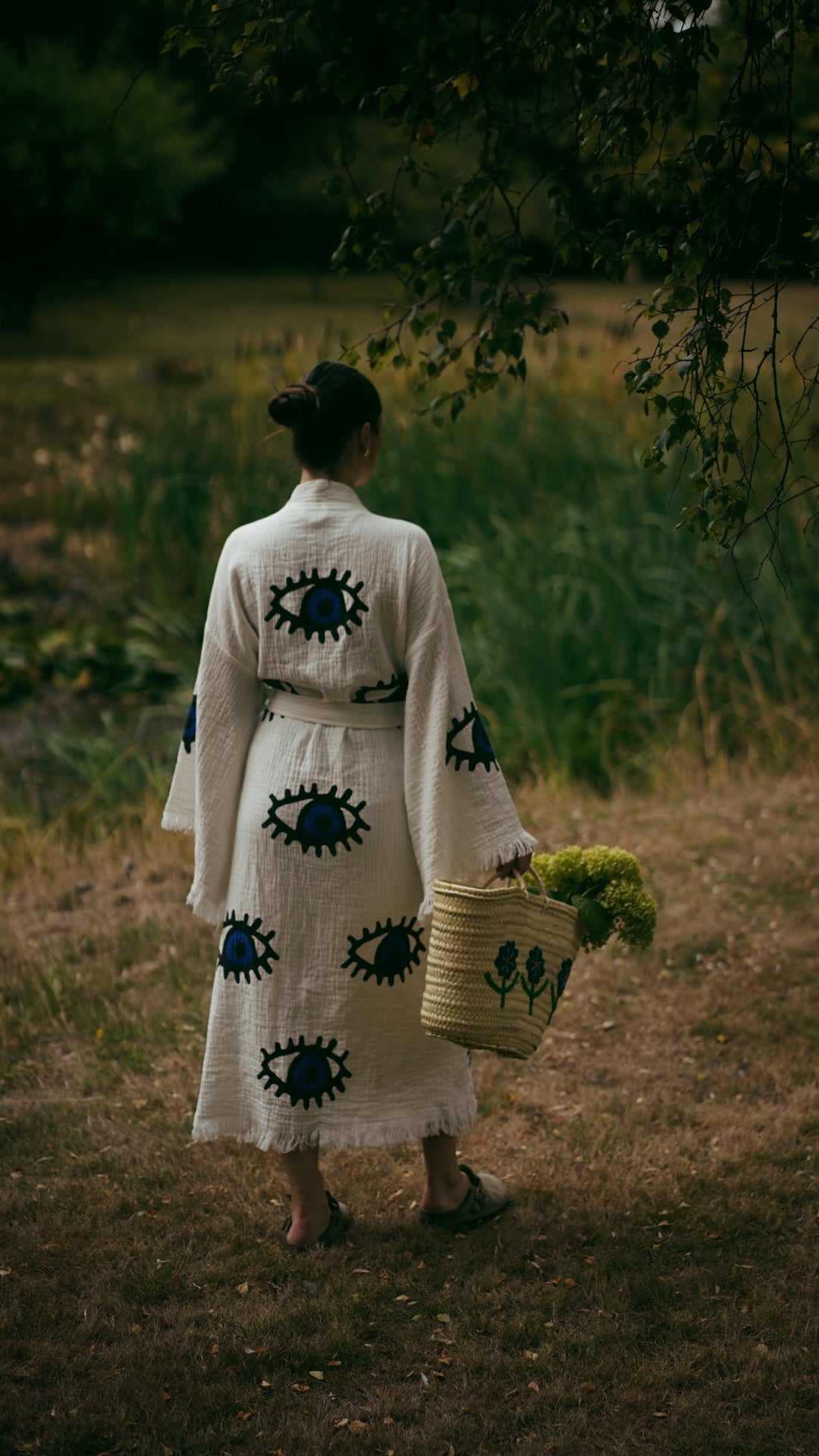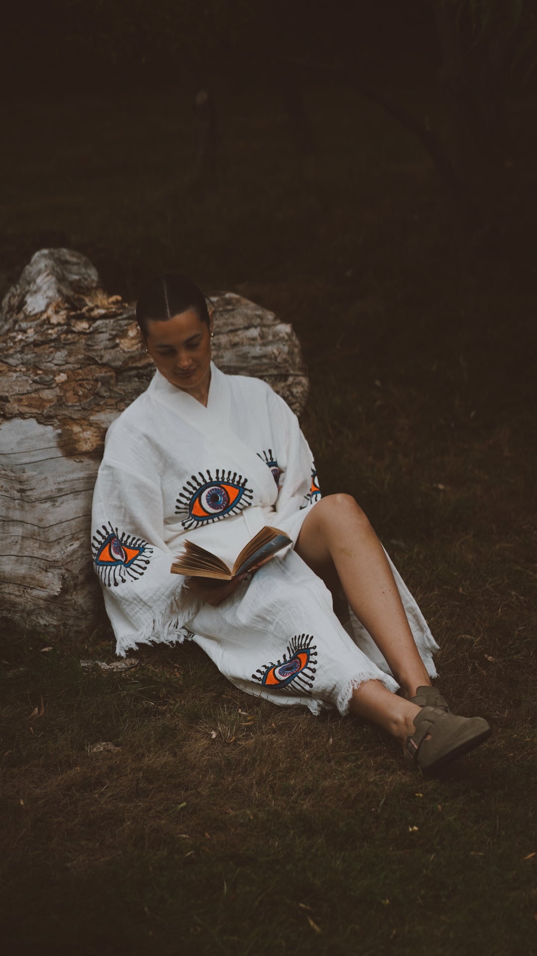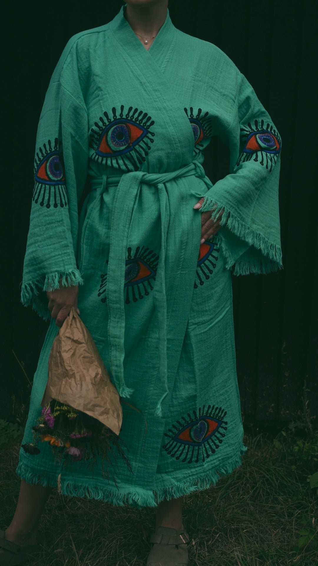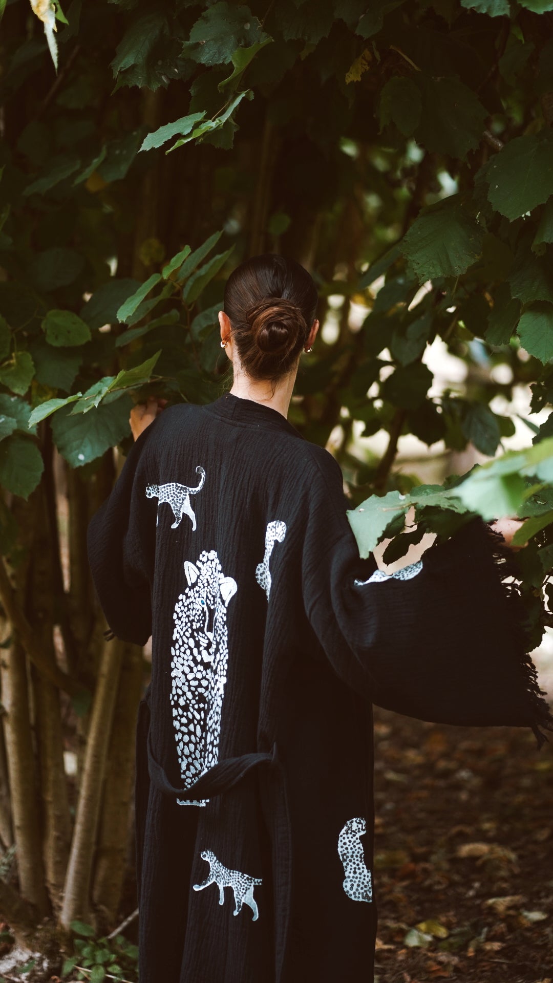 Our kimono robes are beautiful, soft, absorbent, and eco-friendly. Crafted from 100% organic cotton, free from harmful chemicals, and hand-painted with wooden blocks in Turkey, each robe is a true work of art.