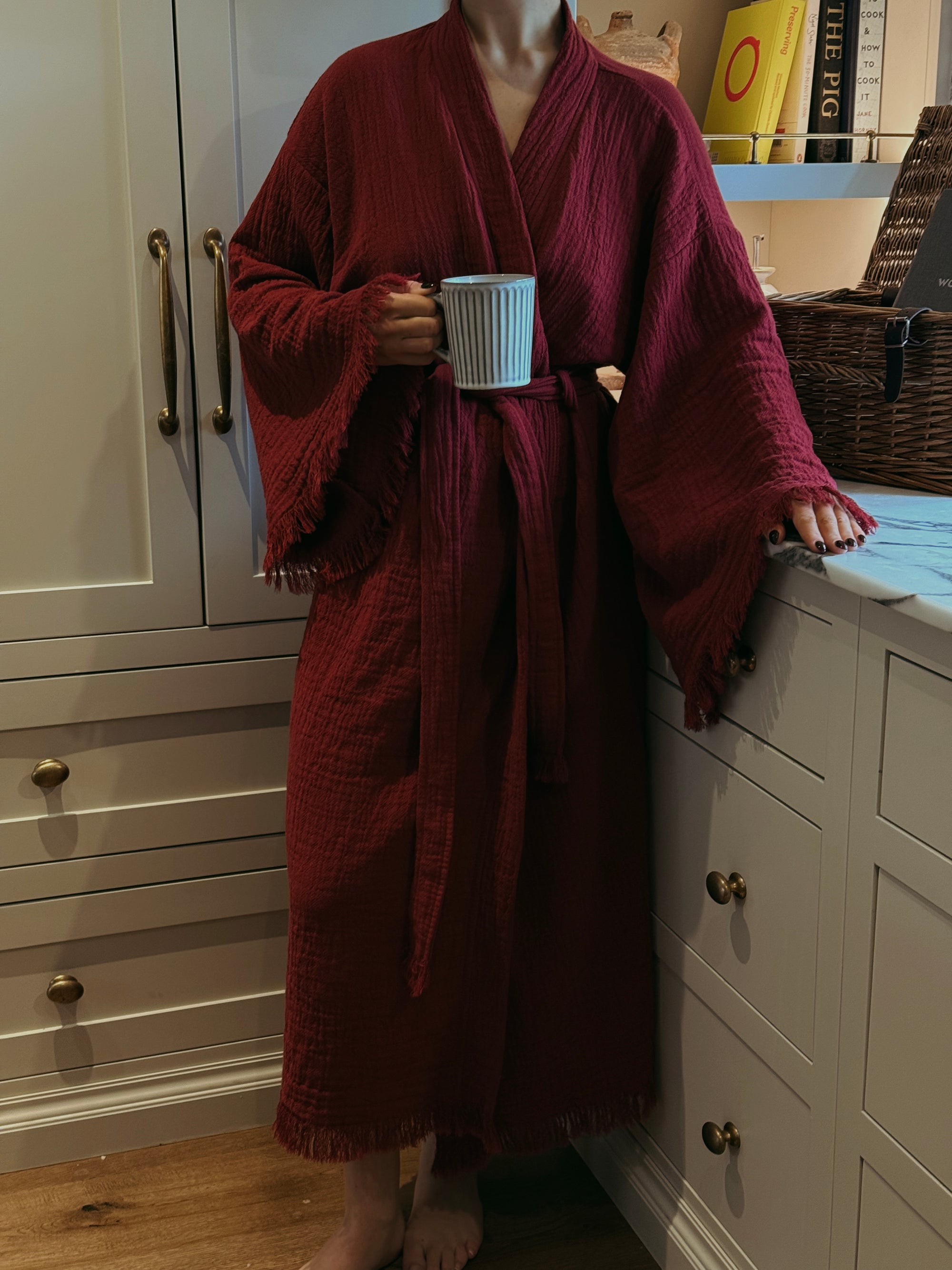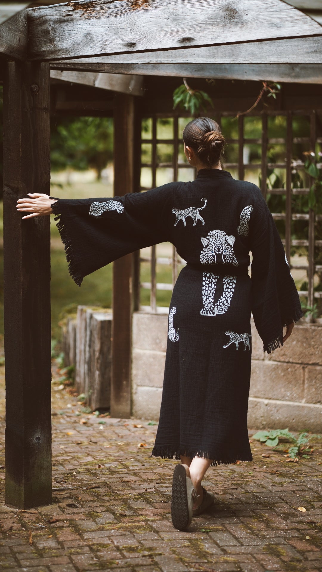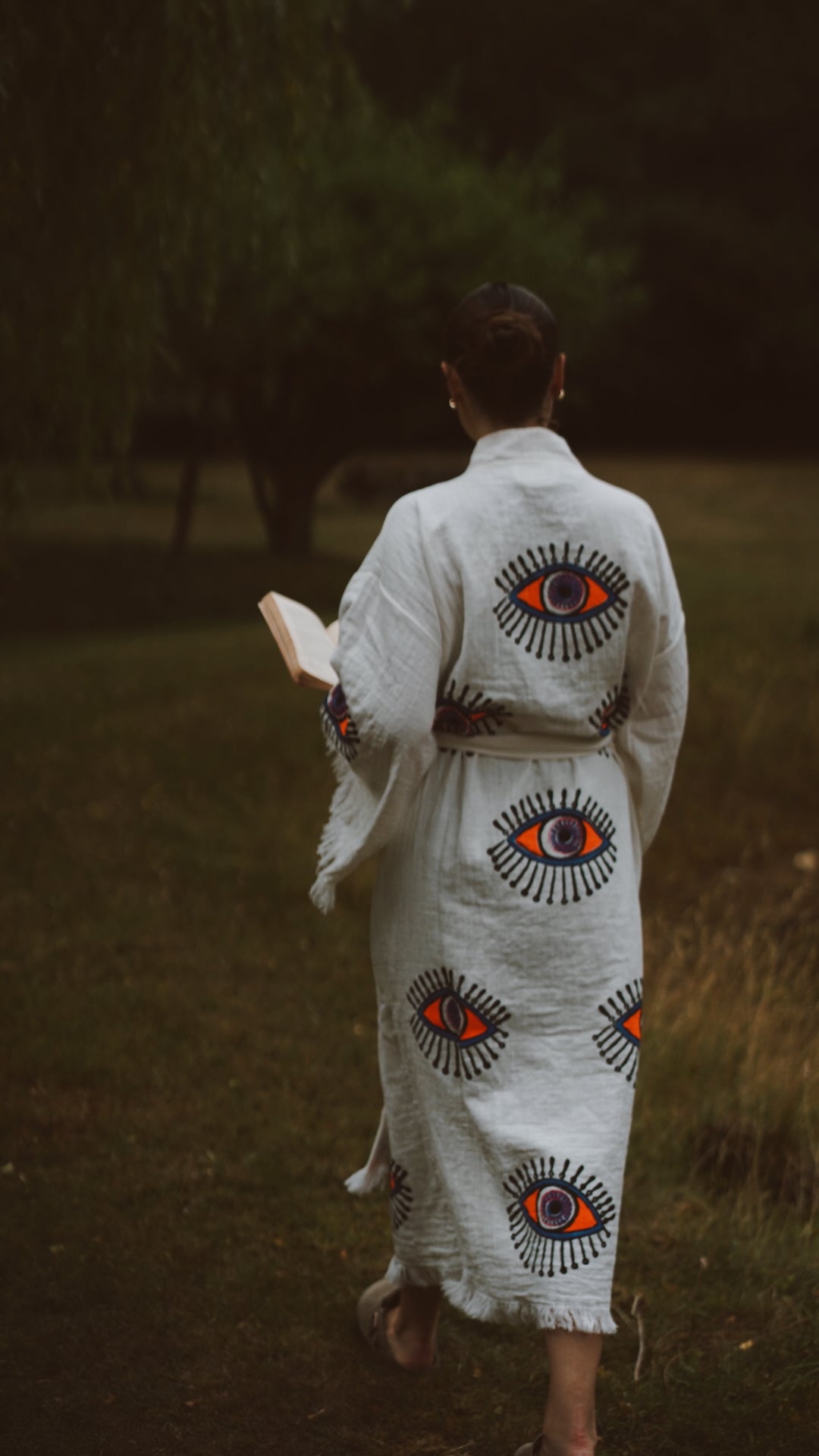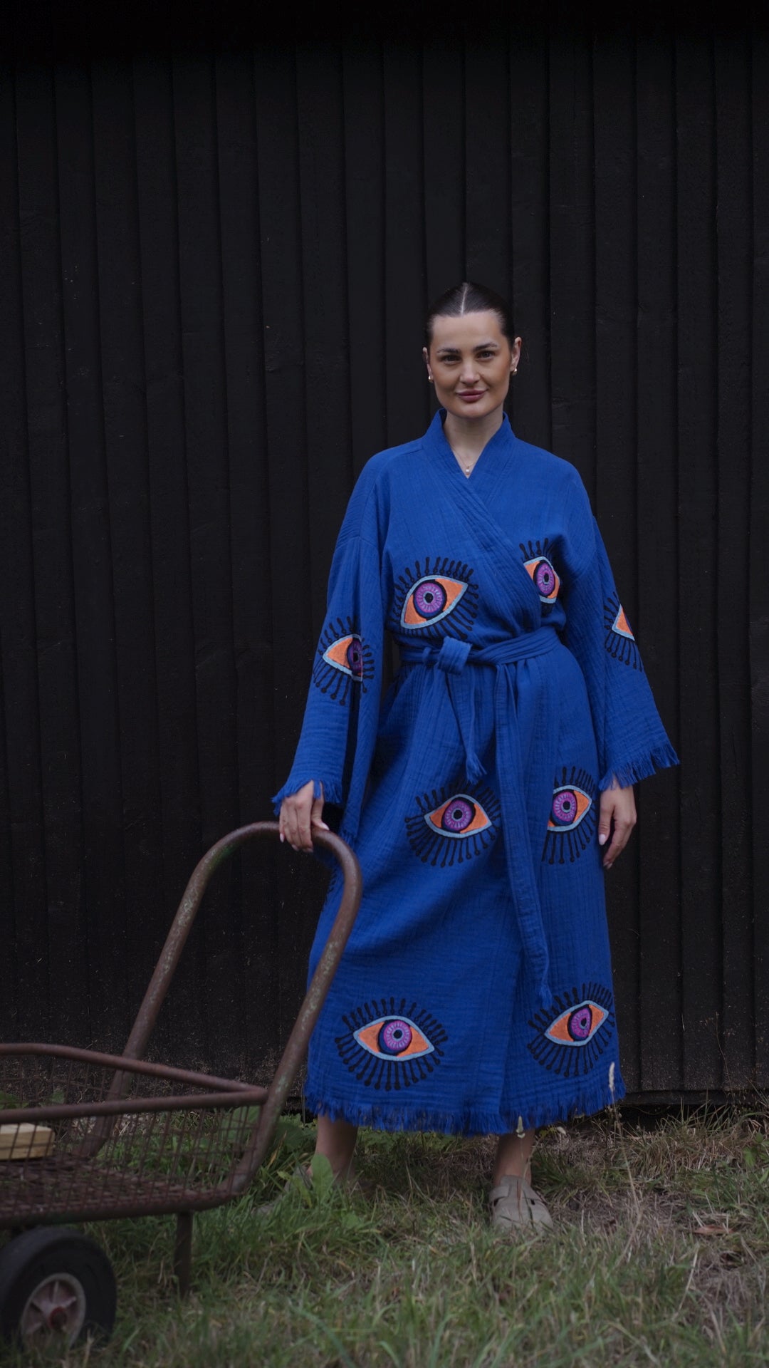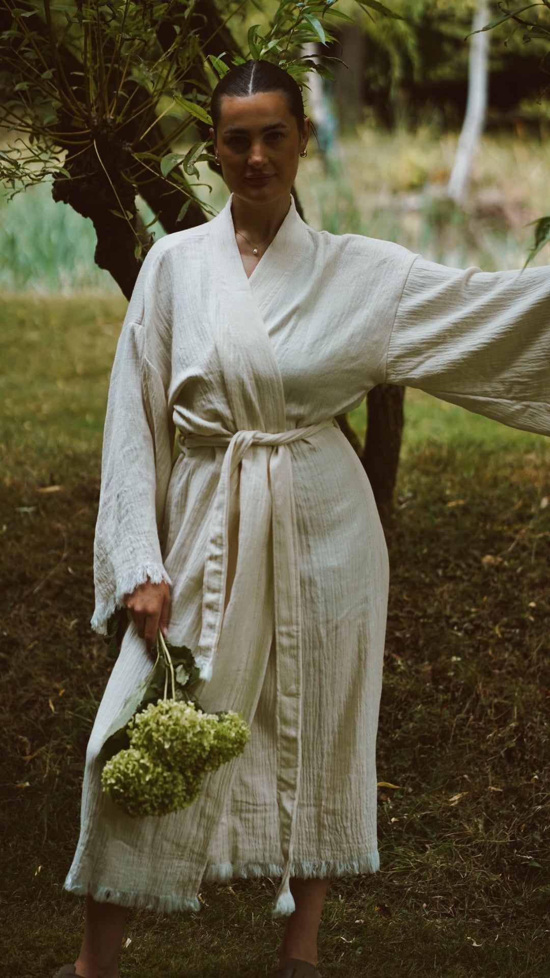 Our kimono robes are beautiful, soft, absorbent, and eco-friendly. Crafted from 100% organic cotton, free from harmful chemicals, and hand-painted with wooden blocks in Turkey, each robe is a true work of art.