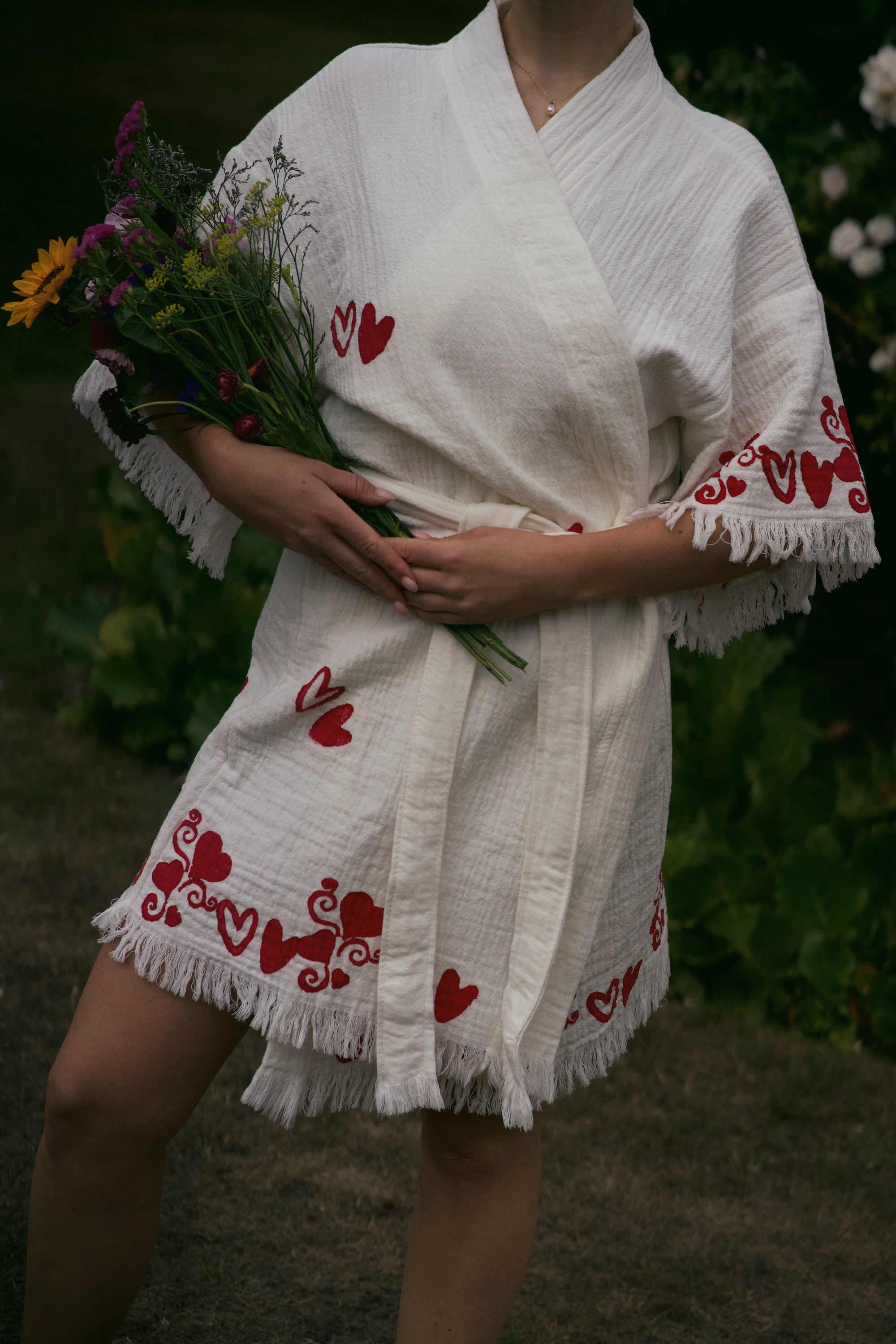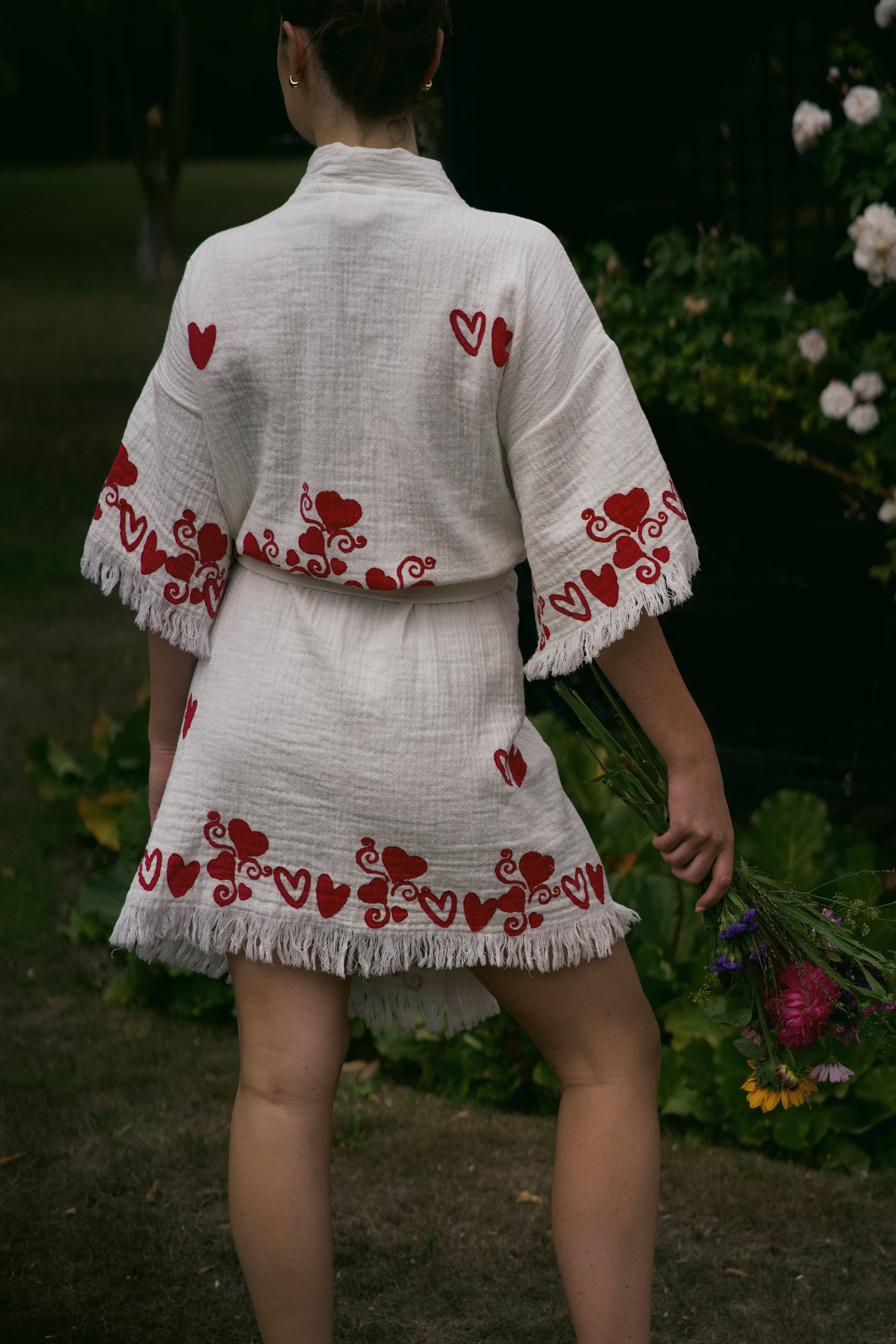 The same beautiful robe, just shorter! Our short robes are the same overall shape as our full length robes, designed to fit a UK size 8-16, with a length of 92cm and a shortened sleeve.